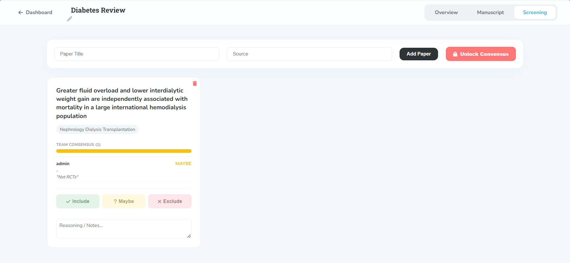Blind voting, duplicate detection, and conflict resolution for systematic reviews.